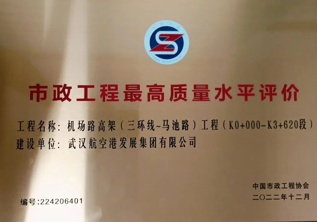 喜訊|機(jī)場(chǎng)路高架工程榮獲市政工程最高質(zhì)量水平評(píng)價(jià)!
