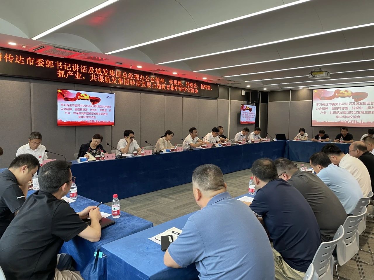 7月10日下午,航發(fā)集團(tuán)學(xué)習(xí)傳達(dá)市委郭書記講話及城發(fā)集團(tuán)總經(jīng)理辦公會精神,圍繞轉(zhuǎn)思路、轉(zhuǎn)觀念、抓產(chǎn)業(yè)、抓創(chuàng)收,開展主題教育集中研學(xué)交流會,共謀航發(fā)集團(tuán)轉(zhuǎn)型發(fā)展新路徑。航發(fā)集團(tuán)領(lǐng)導(dǎo)班子、所屬各單位負(fù)責(zé)人及集團(tuán)全體主辦、協(xié)辦共計(jì)50人參會。